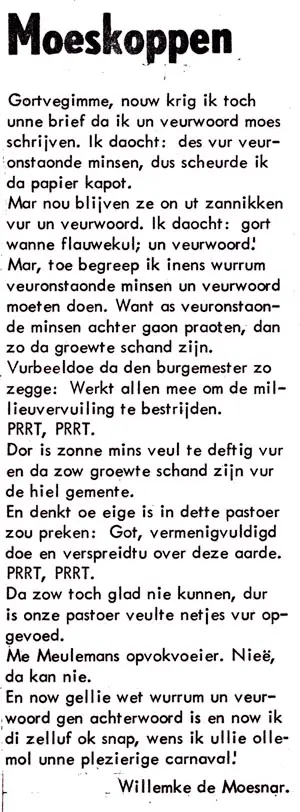 Dokter Langendijk filmde erg veel, ook tijdens de carnaval. In dit filmpje van bijna 10 minuten een compilatie van momenten waar Willemke De Moesnar in voorbij komt. Eigenlijk zou alles online beschikbaar moeten zijn, maar het is wel heel veel… Dus geniet hier alvast van zou ik zeggen… Het is vooral materiaal van 1960 tot 1974 ongeveer… (6:34 min)
