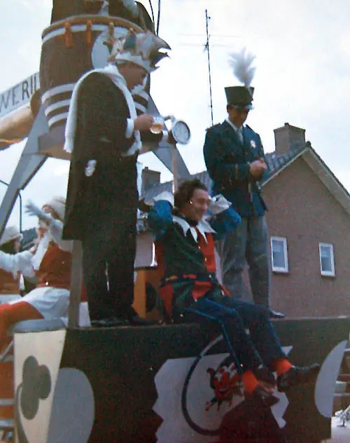 Cor Danen leverde deze foto aan; Wim zittend achterop de nieuwe prinsenwagen. Ik kreeg ook nog oude dubbelacht filmpjes, maar dat is een project op zich om die via een site toonbaar te maken…