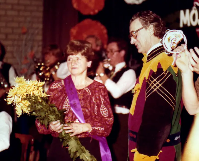 Tijdens het ‘Vatte en Moete bal’ van 1981 wordt de vrouw van Wim gekozen tot Moeskoningin van het Moesland.
