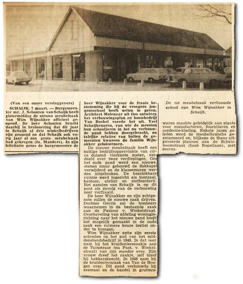 Een prachtig tijdsbeeld: De woninginrichtingszaak van Wim en Roos anno 1973 (alweer 35 jaar geleden). Met wat familie en veel Schaijks personeel in beeld. De kleuren, de kleren, de het assortiment, ongelofelijk hoe snel de tijd dan gaat…. Het pand was in 1968 aangekocht, en in 1973 werd de speelplaats overdekt, en bij de winkel betrokken. Dit is het filmpje van die heropening. Filmpje van maarliefst 7 minuten !